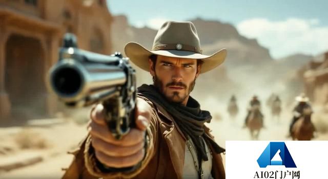 图生视频的想象力可就大了,你可以试试找一张帅气的美国西部电影海报,加一段 Prompt,让他做一些「离谱」的事——比如碰到了一把质量不太好的左轮枪: